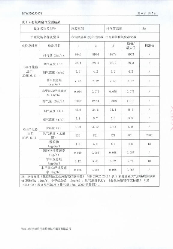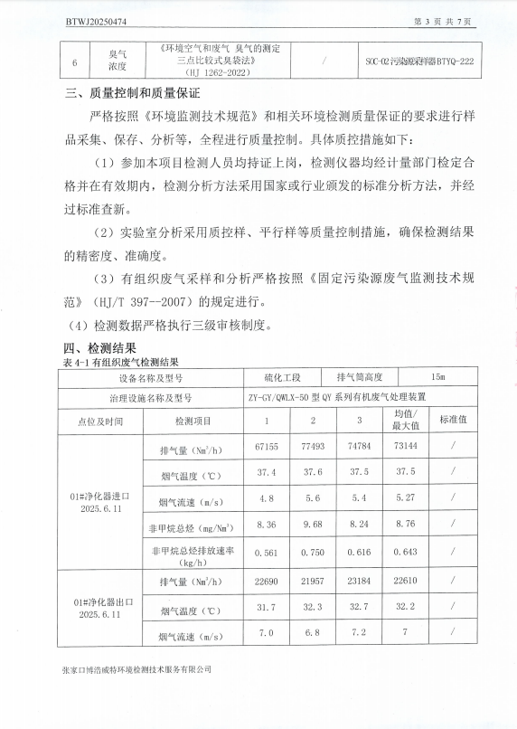 2025年6月有组织废气自行监测项目数据报告